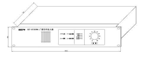 以 GST-GF500WA 型廣播功率放大器為例進行說明,其外形及結構示意圖如圖 9-3。